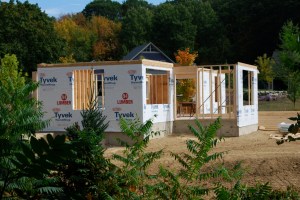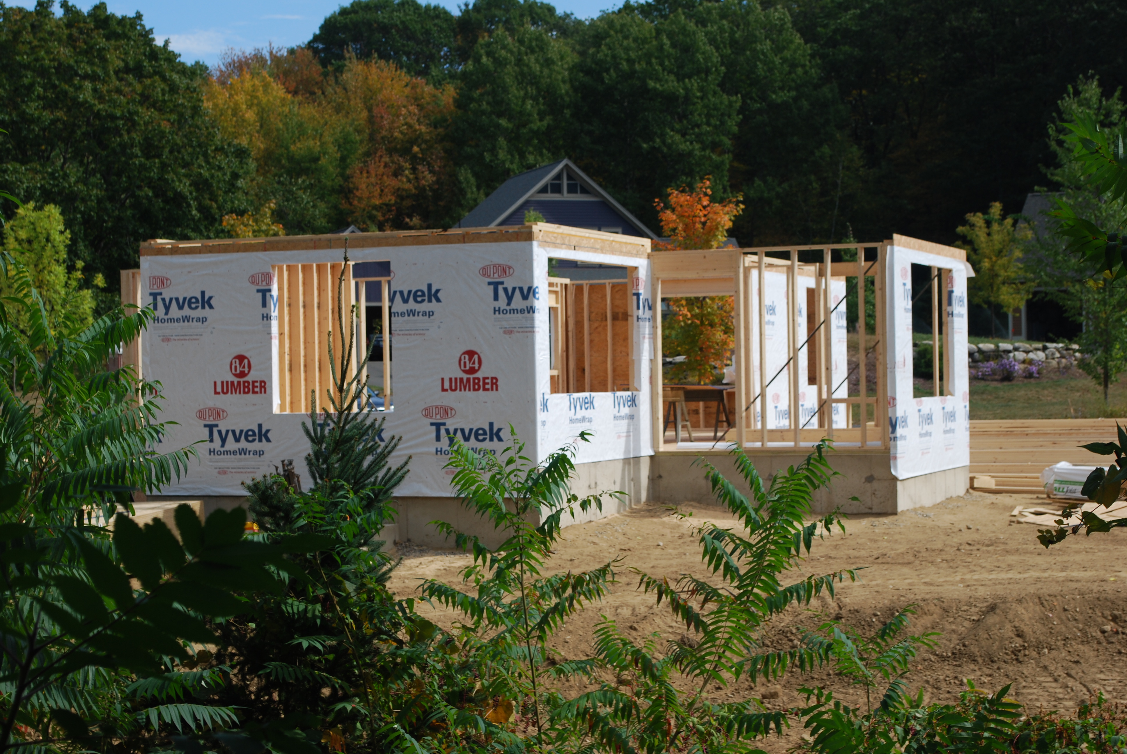 Our house is now being framed. We started with a tetris-piece hole that hints at the shape, but over the next few weeks that shape will turn three-dimensional, into a house, on its way to a home. Those of you who have asked, “what kind of house is it?” will be able to see for yourselves, soon. It will be distinctly New England for sure and not only because of our vestigial front porch.
